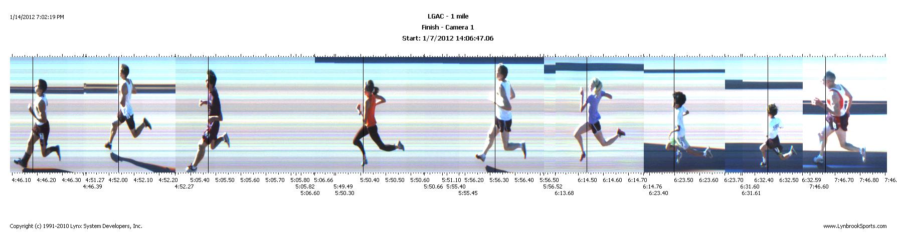 Event LGAC-Mile ========================================================================= Name Year School Finals Wind H# ========================================================================= 1 4:46.19 2 4:52.04 3 5:05.47 4 5:50.41 5 5:56.32 6 6:14.54 7 6:23.50 8 6:32.46 9 7:46.67
