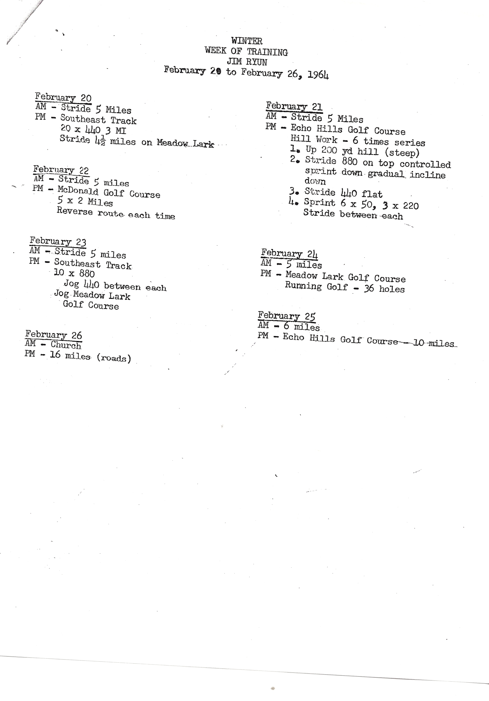 Jim Ryun HS workouts: Oct '63 / Feb '64 / Apr '64 / June '64 (pre-Sub4).