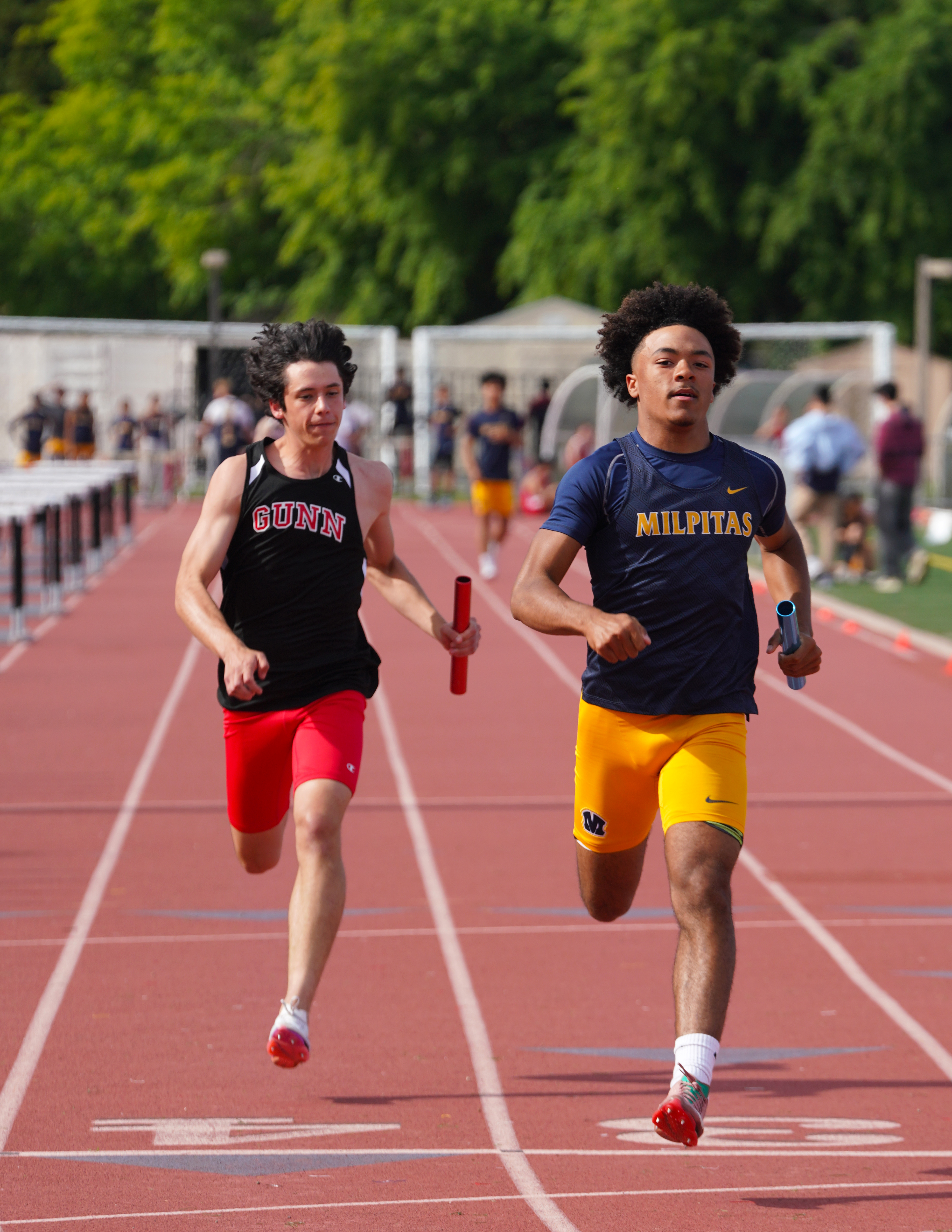 From 1977 where Carl Florant (Berkeley/Paly'73) is in full flight handing off to Keith Taylor in the 4x1. Carl is still ranked #11 with his 13.6h (13.93c) time in the 110HH on the All-Time CCS list.